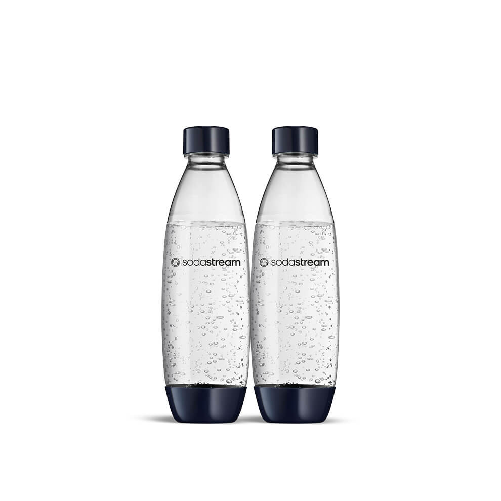 La confezione contiene 2 bottiglie fuse lavabili in lavastoviglie, in PET, da 1 litro. Di colore blu scuro.