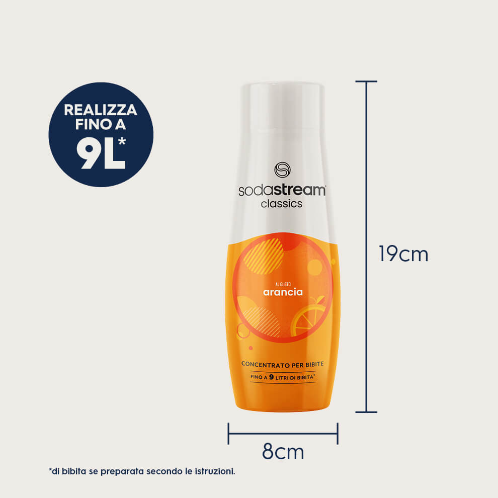 La quantità di concentrato da utilizzare dipende dall'intensità di sapore che vuoi dare alle tue bevande. Noi consigliamo un tappo di concentrato per ogni litro d'acqua gasata.