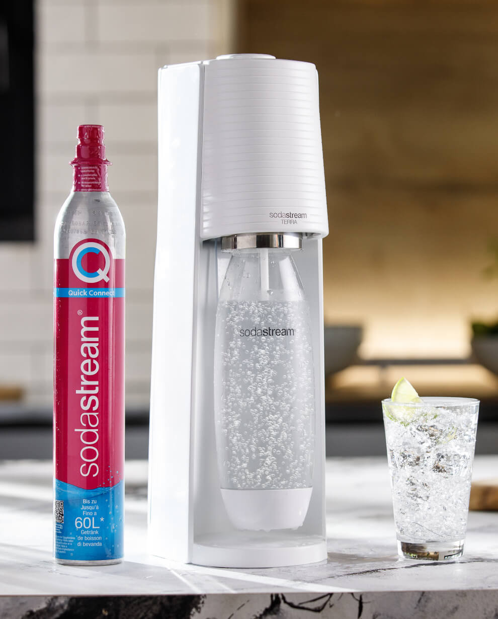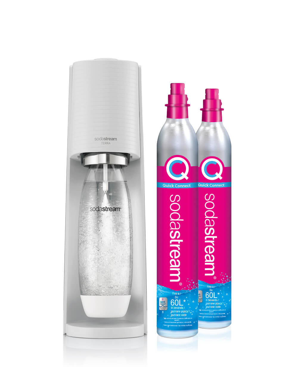 SodaStream Terra™ è il gasatore per acqua frizzante più venduto al mondo. Trasforma l’acqua di rubinetto in acqua frizzante in pochi secondi, con il semplice tocco di un pulsante.