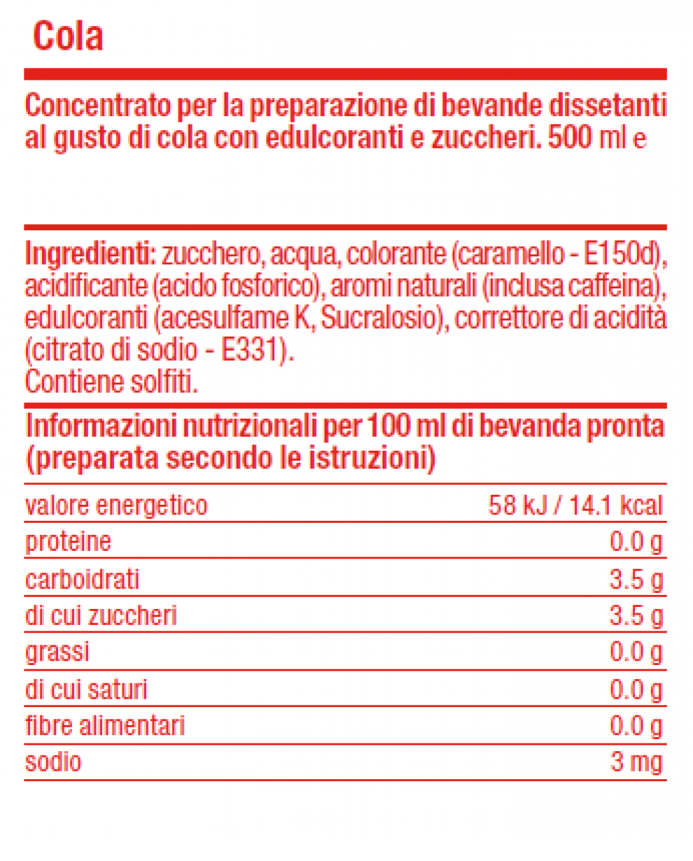 Con una confezione da 500 ml di prodotto si possono preparare 12L di bevanda.