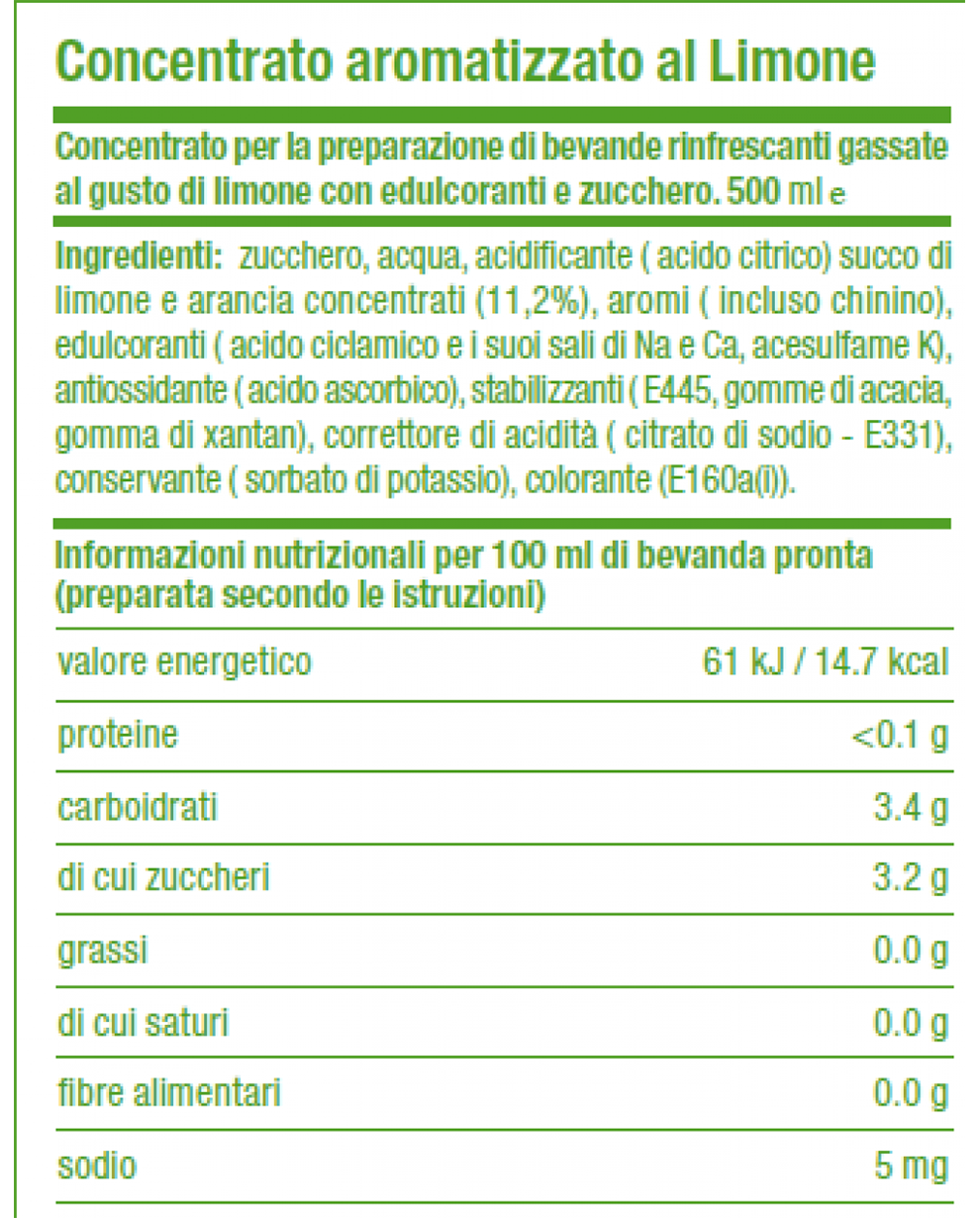 Concentrato per la preparazione di bevande dissetanti gassate al gusto limone.