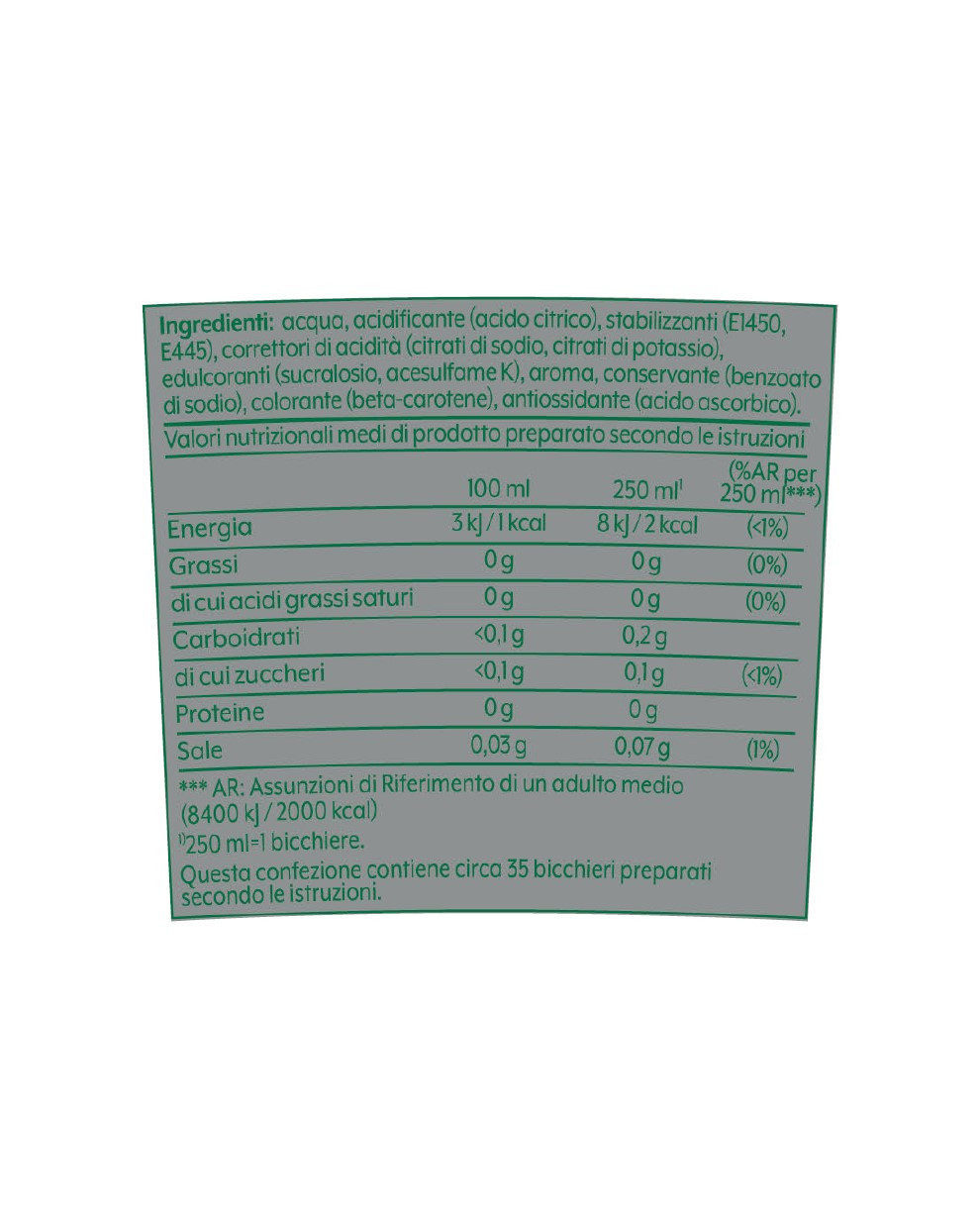Con una confezione da 440 ml di prodotto si possono preparare 9L di bevanda.