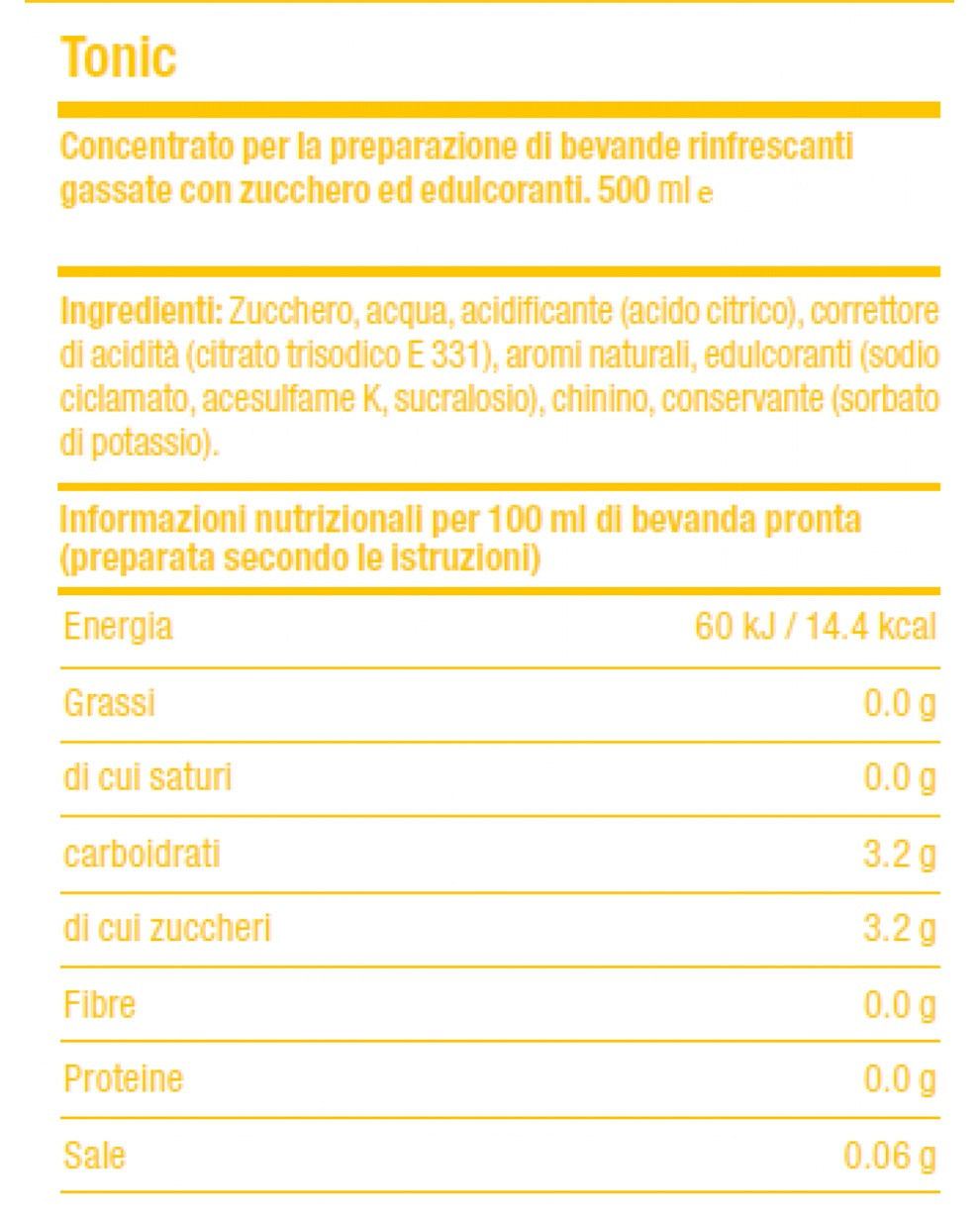 Concentrato per la preparazione di bevande dissetanti gassate al gusto tonic.