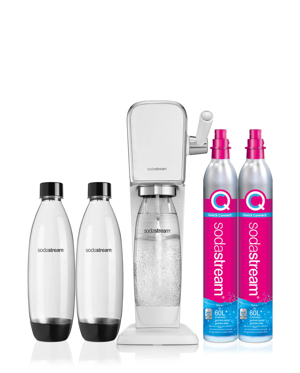 Sodastream Art è il gasatore SodaStream con il nuovo cilindro CQC a incastro rapido e il sistema Snap-Lock per un facile inserimento della bottiglia PET lavabile in lavastoviglie. Dal raffinato design retrò, Art dispone di un’elegante leva per gasare l’acqua quanto vuoi e funziona senza elettricità.