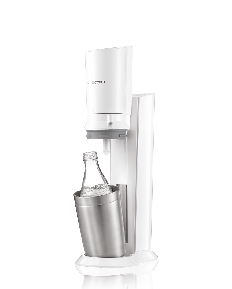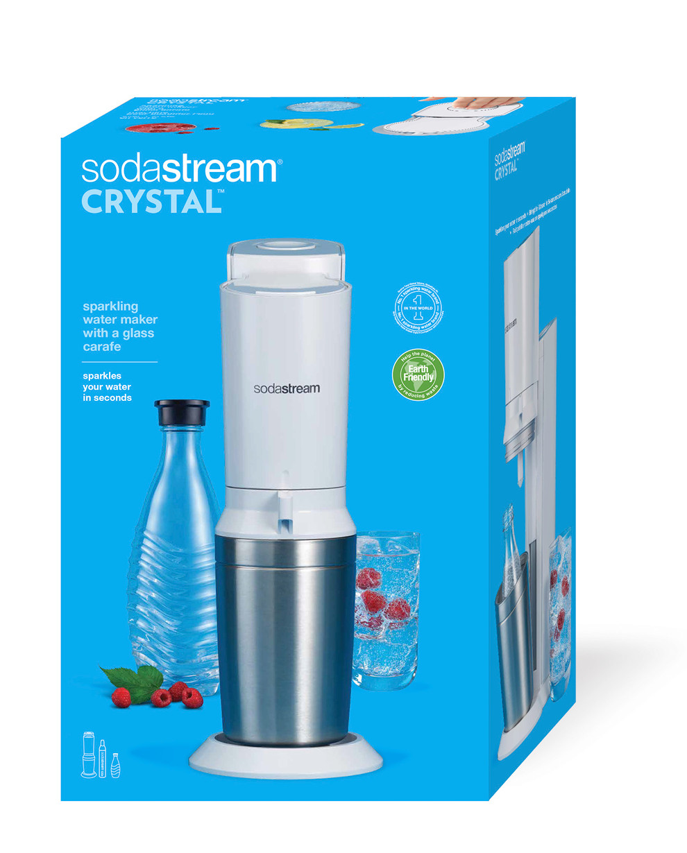 Sodastream Crystal Bianco è il gasatore con bottiglie in vetro nella versione bianca. Pensato per sintetizzare i concetti di praticità ed eleganza, grazie ai dettagli in acciaio inox, è adatto ad ogni cucina e impreziosito da una caraffa in vetro.