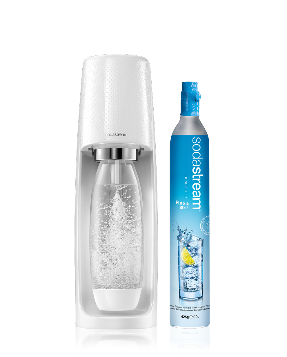 SodaStream SPIRIT ti permette di trasformare l’acqua di rubinetto in acqua frizzante grazie al cilindro di CO2 alimentare in dotazione all’interno del pack. In pochi e semplici passi la tua acqua frizzante sarà pronta: riempi la bottiglia di acqua di rubinetto, aggancia la bottiglia al gasatore e premi il pulsante!