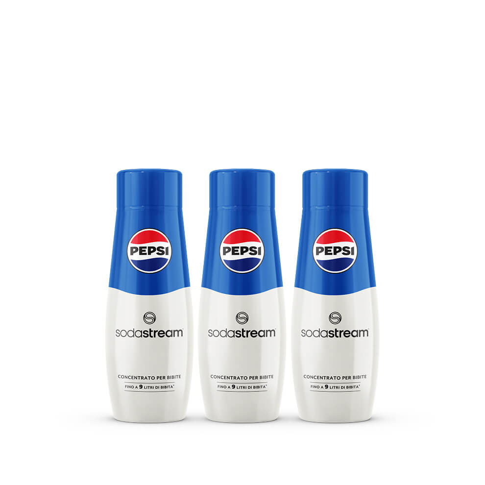 Pack di 3 concentrati per la preparazione di bevande dissetanti gassate al gusto Pepsi.